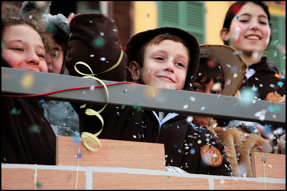 Ma i guizzi di sguardi collaterali, tutto intorno, che sbucano da un cappellino, dietro un cappuccio, oltre la sbarra del carro.... sono un birbante complemento che amplifica l'allegria... le danno una forza e un sapore che talvolta si trova solo nel ricordo di qualcosa più che nel suo stesso svolgersi....