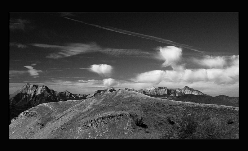 Gran bel paesaggio e ottimo b/n. Fantastico il cielo con le nuvole che staccano in modo stupendo Ciao