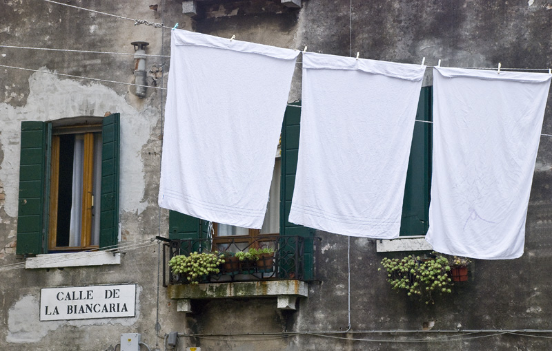 mi piace il contrasto tra la biancheria candida e il muro scrostato, così come il rimando del nome della via ai panni stesi