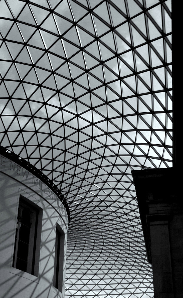 L'occhio segue le linee e va a rimbalzare sull'edificio a destra, quindi torna a sinistra e poi tutto ricomincia...