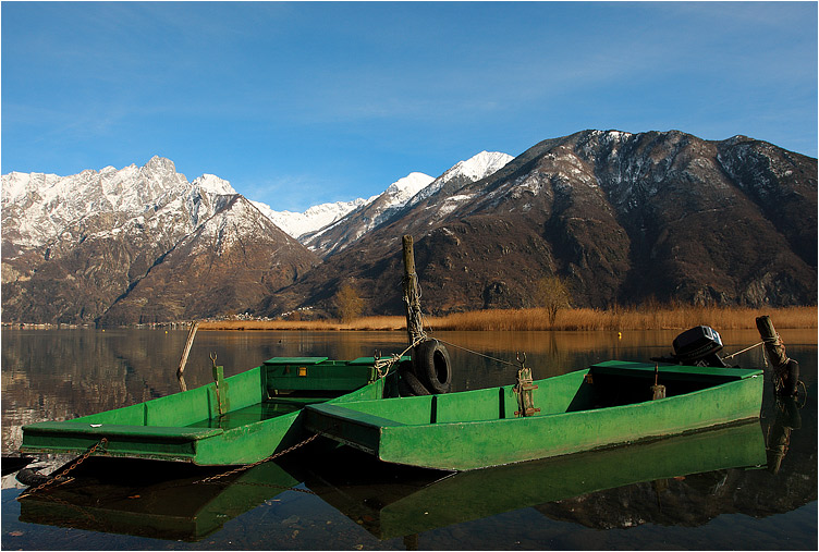 Il panorama mi piace tantissimo per la limpidezza ed i colori invernali ma, le barche così a fuoco e di quel colore verde, attirano la mia attenzione in modo negativo; negativo per il fatto che mi disturbano lo sfondo che mi piace così tanto Triste