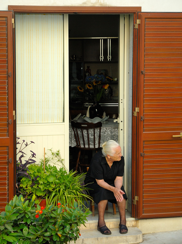 La presenza di una molteplicita' di elementi (piante, fiori, oggetti nello sfondo), di forti motivi grafici (persiane, tenda) e cromatismi, il tutto molto "sharp" e descritto nei minimi particolari, finisce per disorientare l'osservatore e creare distrazione dal soggetto principale.