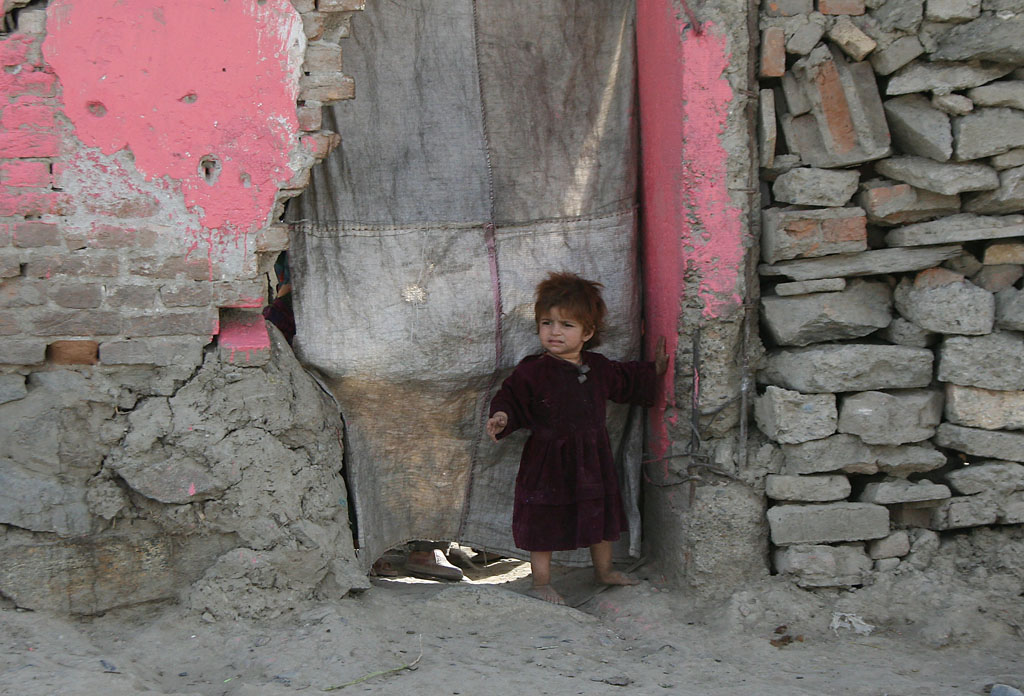 la bellezza della bambina in contrapposizione alla desolazione della casa. Un momento colto molto bene a mio avviso. Forte anche il contrasto delle chiazze di colore sul grigio quasi omogeneo della facciata. Le gocce di colore colato rendono maggiormente drammatica questa immagine. Bellissimo lo sguardo della bambina che guarda lontano ignorando completamente chi la sta riprendendo, con un'espressione che di infantile ha ben poco.