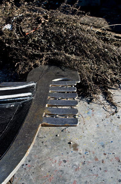 ma che le gondole sia uno delle cose che viene in mente quando si pensa alla tua città (insieme al prezzo per farsi un giro ) è scontato, presumo che tu intendi che certe tradizioni stanno perdendo quota e più passa il tempo quello che prima era un simbolo riconosciuto in tutto il mondo va con il tempo un pò a perdersi, ecco allora che un pezzo di gondola buttato cosi per terra fra le sterpaglie assume un certo valore comunicativo e riesco a cogliere il messaggio che cerchi di darci,