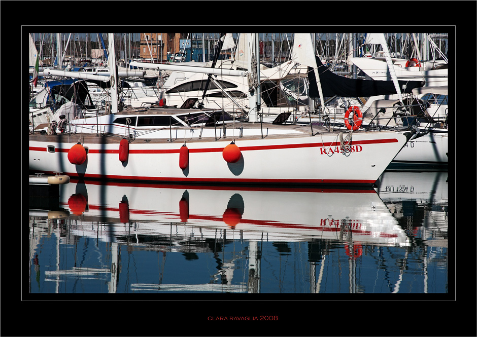 bello questo rosso che spicca tra il groviglio di imbarcazioni bianche.