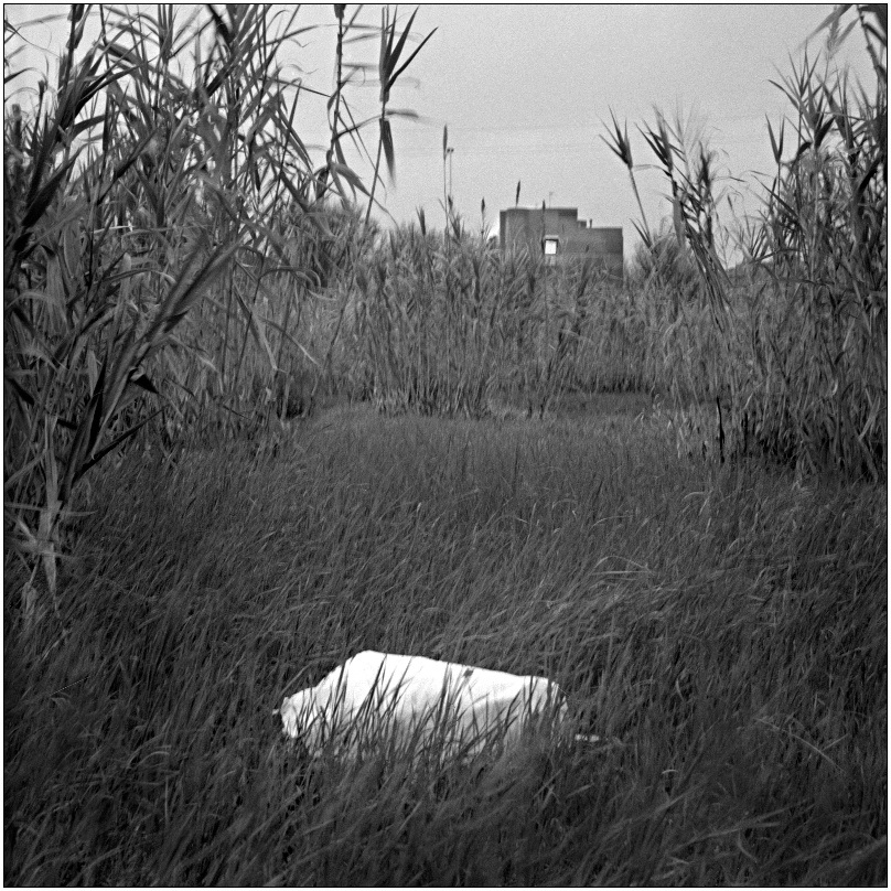 Forse il bianco della "cosa" tra l'erba è bruciacchiato, ma la foto mi piace, morbida credo da tempi lunghi e vento tra le canne - la finestra si lega alla "cosa" in primo piano per logica dei toni, ma il resto è da immaginare... la cosa si avvicina? o è stata abbandonata da chi abita dietro la finestra? Sospensione, la composizione tutto sommato è in quiete, il soggetto della foto no...