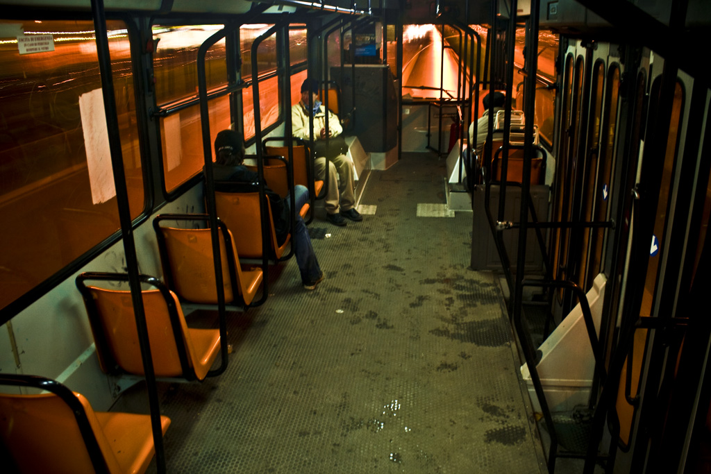 La foto è stata scattata col supporto di un Gorillapod, non so se hai presente (il treppiede snodabile), l'illuminazione è dovuta alle luci presenti all'interno dell'autobus...ho solo scattato con esposizione lunga, se non ricordo male 4sec.