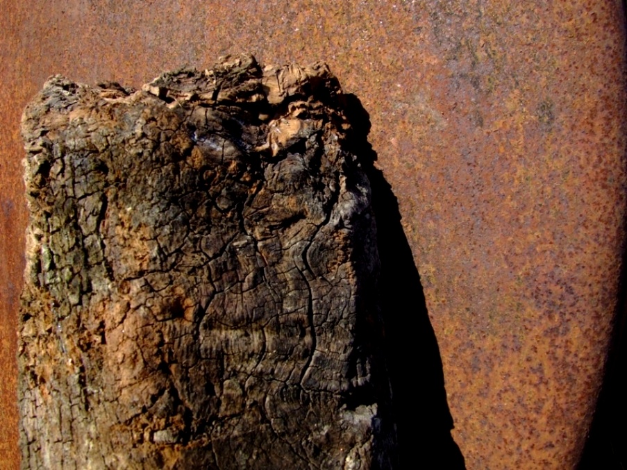 Trae motivo di bellezza dalla sua grande semplicità. Bellissima la superficie del legno e ancor più la superficie corrosa del ferro, vero poema di ossidi e ossidi idrati di Fe(II) ed Fe(III) (dal punto di vista del chimico che è in me. In parole povere, ruggine). Scherzi a parte, molto bella.