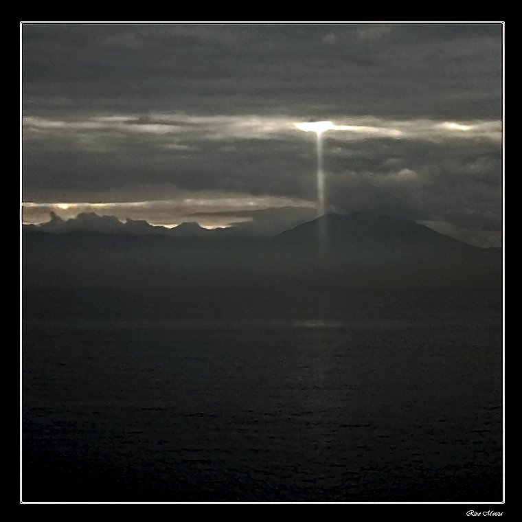 Bellissimo quel raggio di luce che scende a capofitto nel mare facendosi spazio tra il cielo nuvoloso