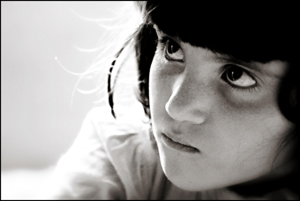 Gli occhi sono scuri, scurissimi con una fiamma di luce ferma e diretta che rimanda, accompagnati dall’espressione delle labbra strette, ad un centro di interesse fuori e si fanno espressione a tratti di un dissenso sotteso e poco esibito, ...di un’interrogarsi ed un interrogare carico di consapevolezza.