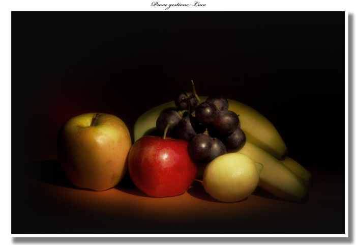 Mi piace l'effetto creato dalla luce sulla buccia della frutta, rendendola lucida, soprattutto sulla mela.. bella anche quella leggera che inonda tutto il resto..