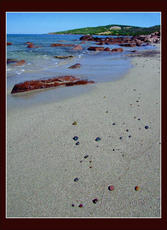 Foto molto bella. Sono però d'accordo con Giap_Tass sul fatto che, tagliando via la parte superiore a partire dal punto in cui l'acqua tocca quasi il margine destro, si ottiene un'immagine ancora più bella (il promontorio verde sullo sfondo distrae infatti lo sguardo dai meravigliosi sassolini lucenti dei primi piani; come se appartenesse ad un'altra foto, corrispondente grosso modo al rettangolo orizzontale superiore che si ottiene tagliando a metà il fotogramma).