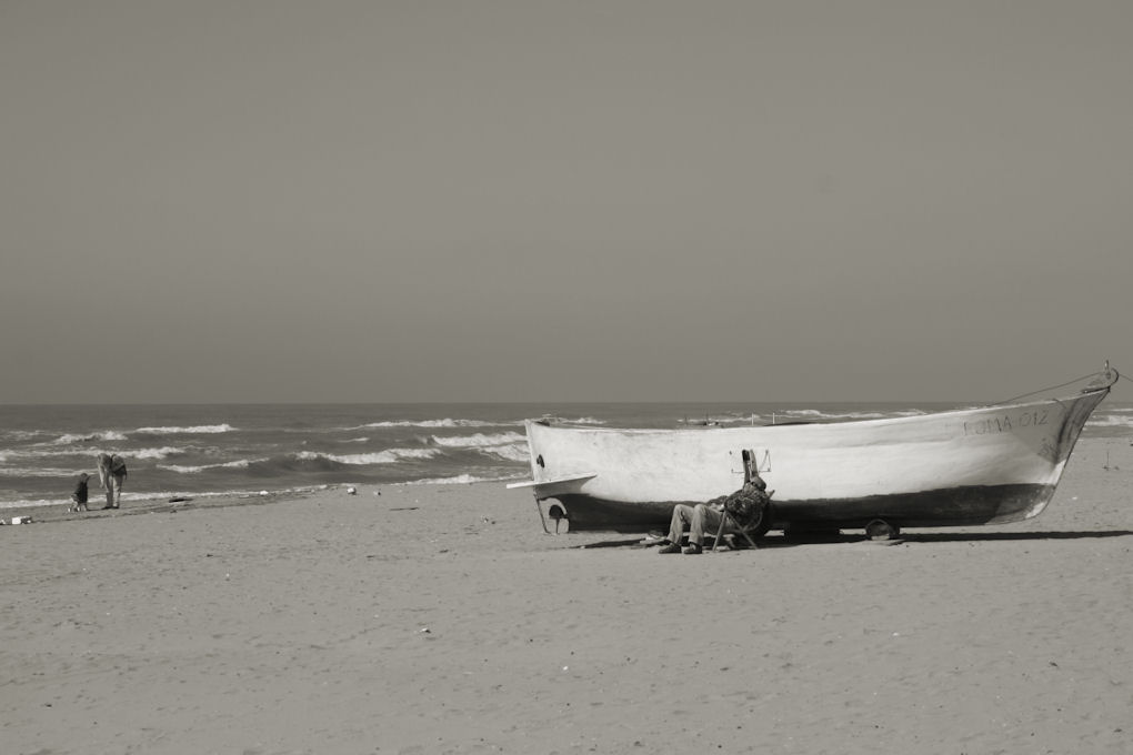 Devo dire che a colori la apprezzo di più; la fascia rossa della barca cattura il mio sguardo che di conseguenza casca poi sull'omino in riposo..