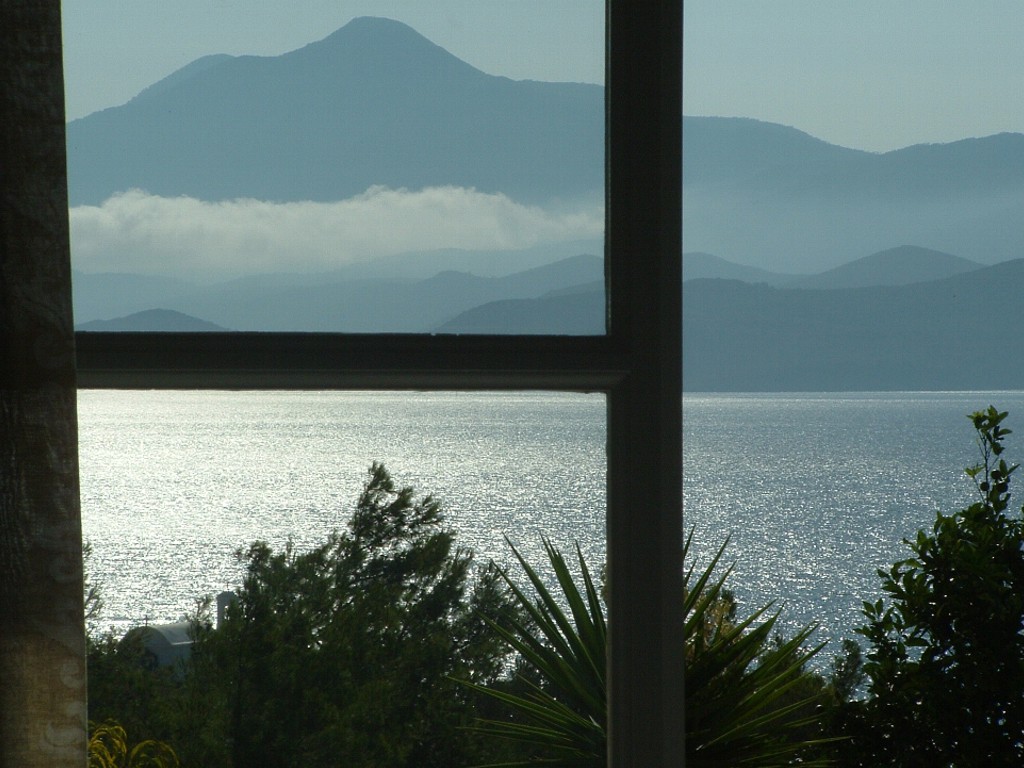 Personalmente avrei scattato senza inquadrare i bordi della finestra: le colline sullo sfondo sono molto gradevoli da osservare così come sono