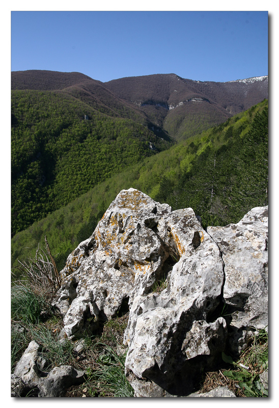 ...piacevole il dolce susseguirsi dei diversi piani... gradevole la resa dela vegetazione mentre la roccia in primo piano,per contrasto tonale, è un po presente rubando un poco la scena...