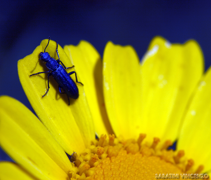c'è qualcosa di strano Vincenzo..... il va bene.... l'insetto blu e lo sfondo blu mi sembrano strani ....questo insetto lo conosco abbastanza bene...dalle mie parti però è verde brillante ...ma il tuo è così blu di natura o hai cambiato il colore in PW??? Cmq l'insettino lo vedo scuro e quindi poco leggibile ...avrei scelto un taglio diverso lasciando più aria davanti al soggetto invece che dietro!