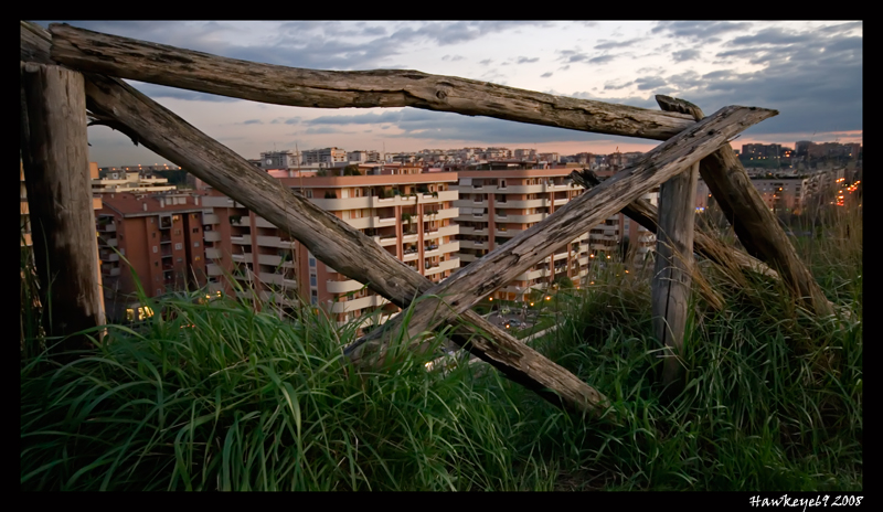 ben pensata e ben realizzata. il confine tra la città e tutto quello che si può immaginare che possa esserci dall'altra parte di questi legni incrociati