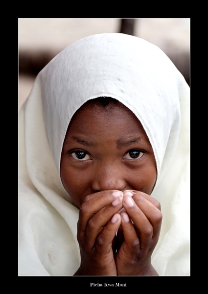 | Una scolaretta di fede musulmana di Nungwi (Zanzibar) mi presta il suo timido volto. |