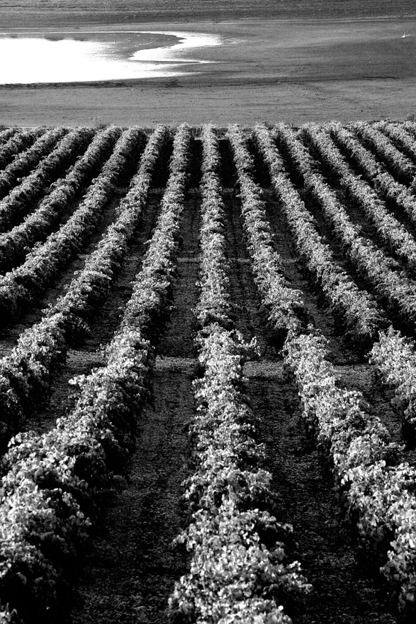 Domanda: è una scansione? Perchè mi sembra che perda leggermente di nitidezza... ma magari mi sbaglio... comunque mi piace com'è composta con quel "buco" bianco in alto e le stradine che tagliano perpendicolarmente i filari, un taglio quadrato lo hai preso in considerazione? Smile