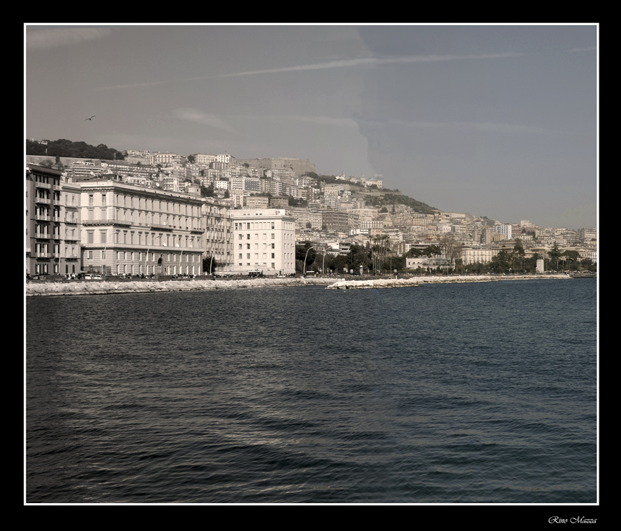 Bella immagine, forse un po' desaturata di quei bellissimi colori che ho visto stasera passeggiando su via Caracciolo, ma che nel complesso trovo funzionale a una scelta compositiva originale, volta a una ricerca di linguaggio del tutto personale e pienamente condivisibile.
