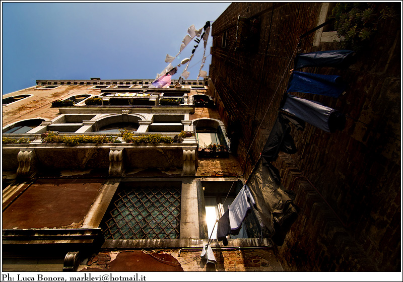 Come sempre, davvero notevole la nitidezza e la resa dei colori, come la presenza dei fili e dei panni, che rompono la rigidità delle linee precise dell'architettura stessa e danno un po' di movimento al tutto.. allegre presenze mosse dal venticello..