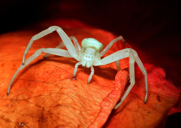 alla faccia del ragnetto...piccolo che sia, visto in questa scala è piuttosto intimidatori... non tanto mi colpisce il ragno, ma i particolari della foglia (o almeno credo sia una foglia oppure un petalo di qualche fiore) e i colori sono molto belli