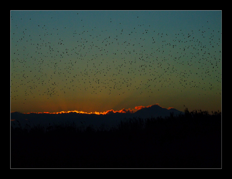 Sì è uno stormo enorme di uccelli... qualche settimana fa ero alla foce del fiume vicino casa e li vedevo molto in lontananza. Un pescatore mi ha visto con la macchinetta e notando che stavo per andar via mi ha consigliato di rimanere perché questo spettacolo si ripropone spesso in certe giornate Smile