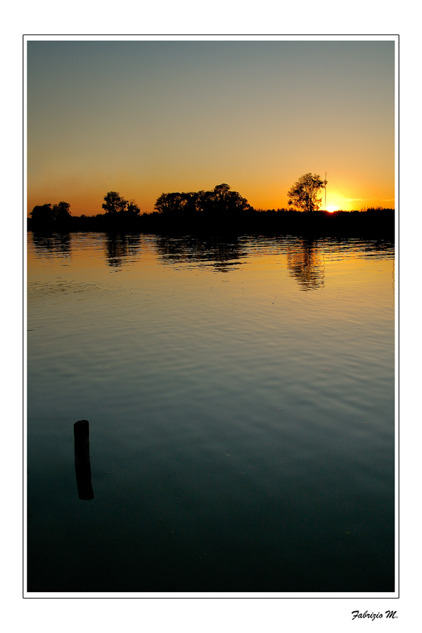 trovo fondamentale nonche ben posizionato quello spezzone di palo che fuoriesce dall acqua nella parte bassa della foto. tale elemento dona equilibrio alla foto e ne aumenta il senso di prospettiva dando all occhio di chi guarda un riferimento in pp per poi lasciarsi andare fino verso l orizzonte.