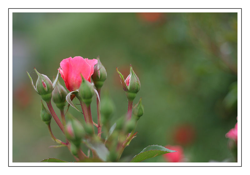 Uno scatto dalle tonalità molto gradevoli. Ottimo lo sfondo. Forse ci sono troppi boccioli sfuocati in primo piano che distraggono l'attenzione dal soggetto principale. Ok!