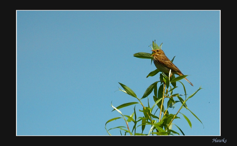 No, egli si oscura tra il verde. Con buona pace dell'autore e di noi che avremmo fatto di tutto per vedere la testolina con quel becco aperto di profilo che stacca sullo sfondo del cielo. Avremmo fatto tutto tranne clonare il cielo per cancellare le foglie.
