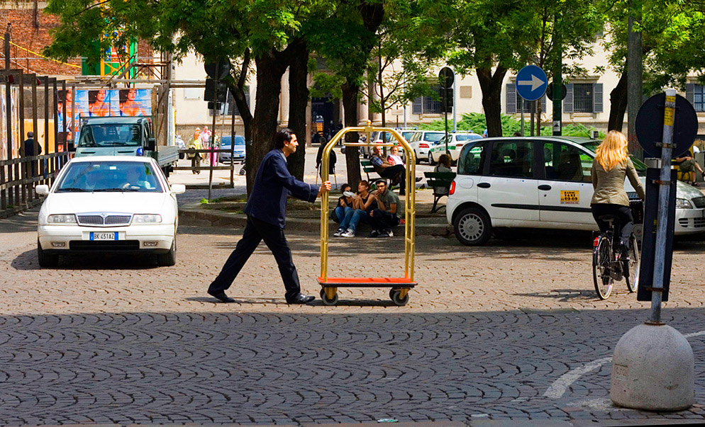 Click al momento giusto .. hai "imballato" cinque persone pronte per il trasporto ... Smile buono anche il congelamento del passo ... l'inquadratura ampia ha raccolto qualche elemento in più ma il centro della scena resta visibile ...