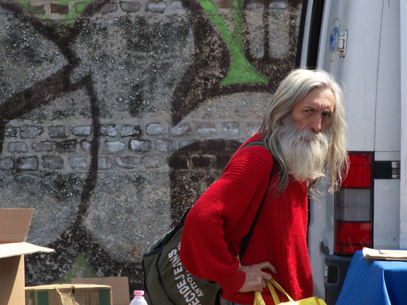 Ho scattato questa foto sabato pomeriggio al mercato di Senigaglia a Milano. Il signore con la barba canuta e il maglione ha attirato la mia attenzione pe ril suo sguardo profondo. Spero di avergli reso giustizia con questa mia foto rubata.