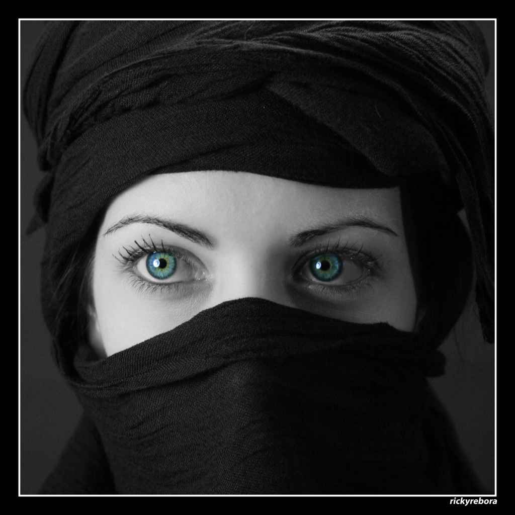 Costruire un'immagine solo su splendidi occhi, velando il resto del volto, è un'idea non certo originale ma sempre d'effetto ... forse l'autore, conscio del fatto, ha voluto fare qualche cosa di diverso rielaborandola in questo modo.