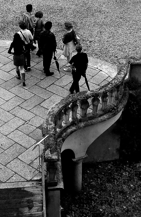 il balcone che si appoggia sulle colonne, lo spartito appoggiato sul leggio, i due uomini che si appoggiano all'ombrello, l'uomo più in alto che si appoggia alla sua compagna, solo il nero...troppo nero  |