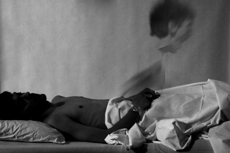 L'idea e' carina, ma il bianco e nero non mi cinvince troppo e... hai messo un fondale di carta dietro al letto?