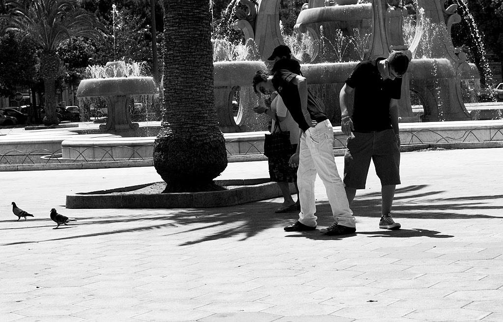 Lode per l'attimo, dispiacere per la sfortuna che lo ha fatto capitare quando dietro erano presenti elementi di disturbo (altri passanti) e la scena in una zona d'ombra, una tiratina d'orecchie per l'orizzonte storto e la volontà di includere i piccioni, che più che aggiungere significato alla scena, distraggono (punta sempre all'essenza del messaggio e se il messaggio è già forte, non aggiungere altri elementi di disturbo concettuali) ...