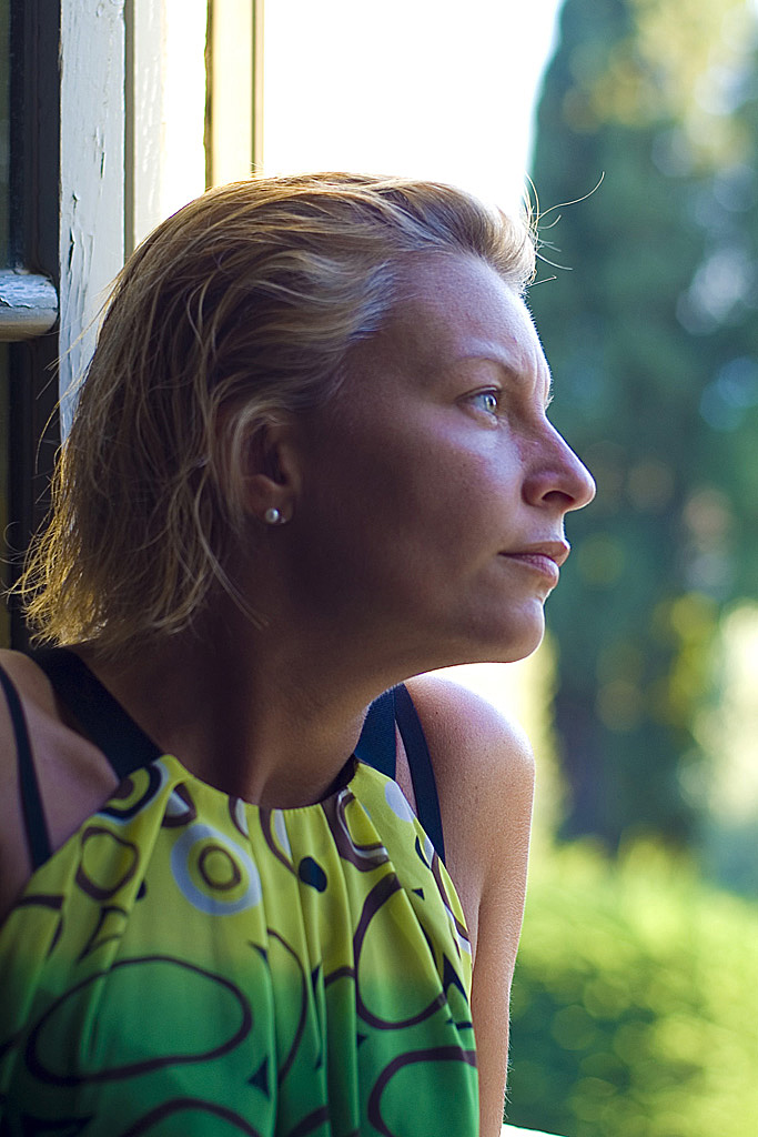 Mi piace la posa "riflessiva" ma ci sono dei difetti: la parte più nitida sembra essere la spalla e la parte alta dello scatto è davvero troppo bruciata, attirando troppo lo sguardo... |