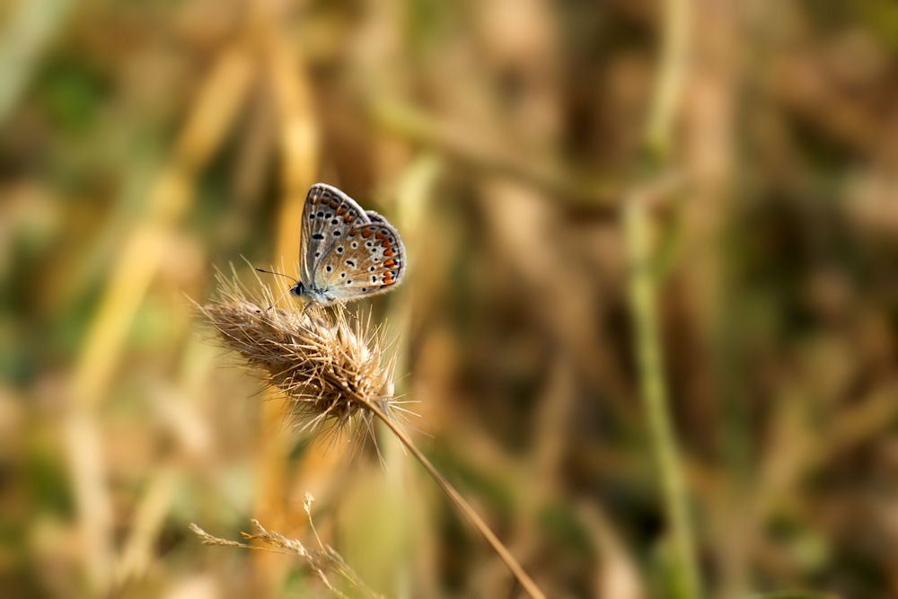 Bellissimo il contrasto tra la delicatezza della farfalla e la spiga quasi "pungente"! Ok!