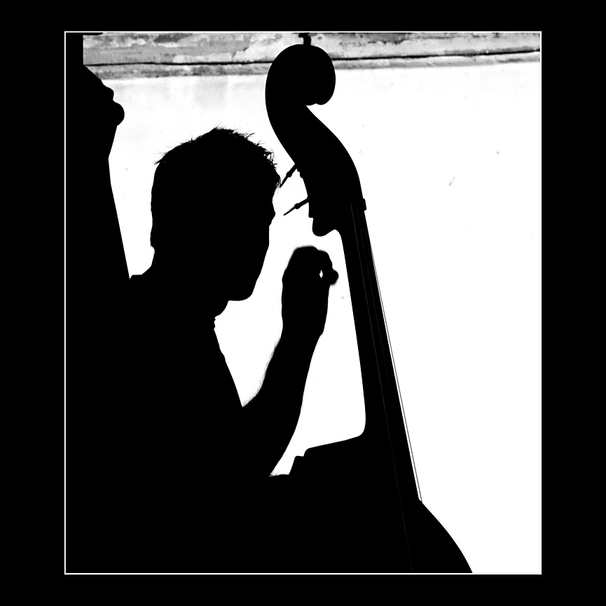 Bella realizzazione bi-dimensionale basate sulle ombre...bella, sia che sia stata ricercata, sia che sia colpo di...c...dea bendata...., l'ombra dell'unica corda visibile dello strumento che rompe la sagoma uniforme....