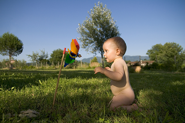 Forse uno scatto dall'alto... ma fagiolino è super attento avrebbe lasciato perdere la girandola e cercato di prendere la mia Canon! Very Happy