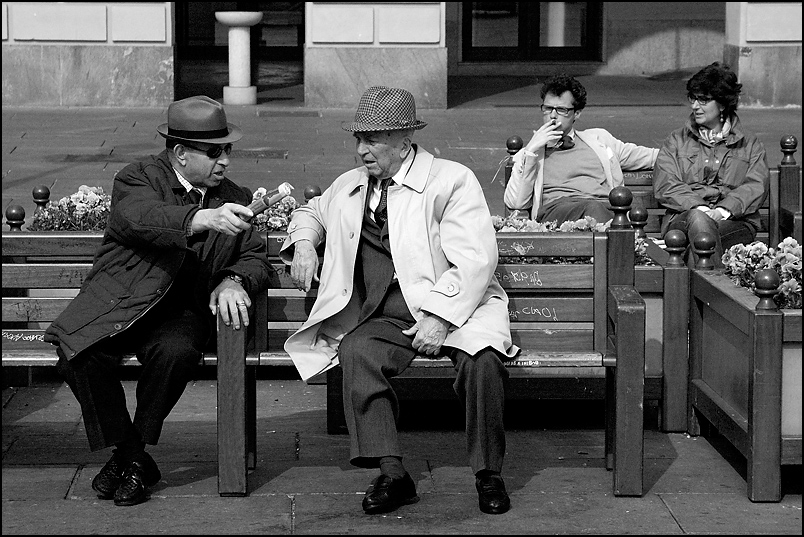bello il fervore dei due in primo piano e l'indifferenza della coppia dietro, mi piace il bw è ok  |