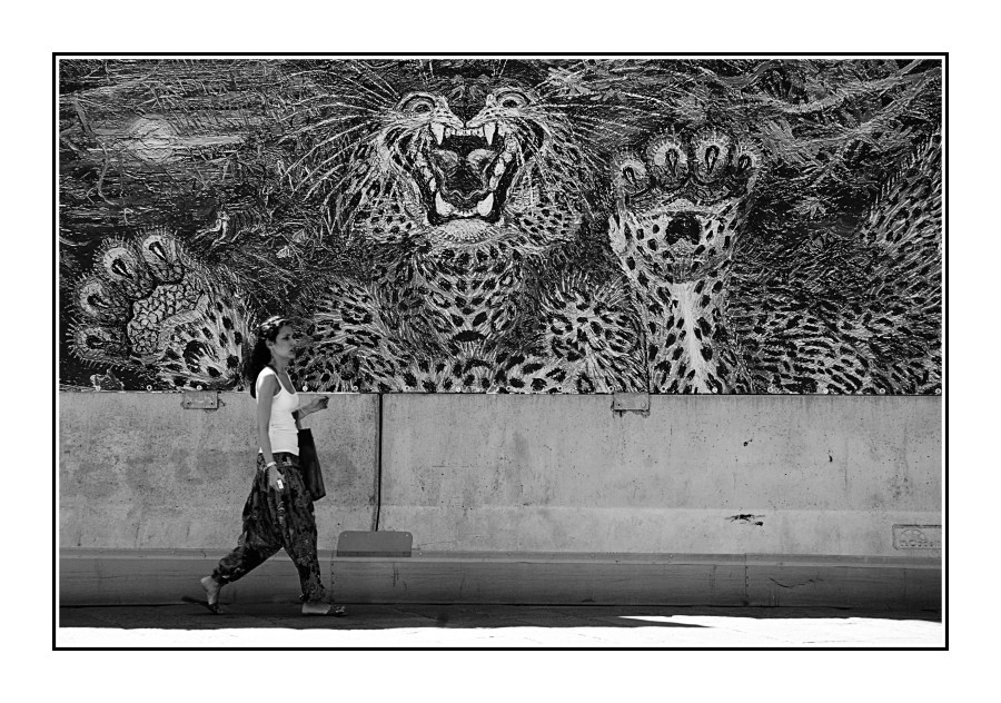 Ottimo scatto. I pantaloni della ragazza richiamano il murales.