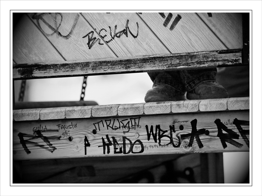 Il perchè mi piace tanto onestamente non lo so, però mi mette un pò di tristezza forse dovuta al BN, alle scritte sul legno, alla vignettatura (che ho aggiunto io successivamente)....sono elementi che personalmente contrappongo al posto, cioè al parco, luogo ove solitamente si vede gioia e serenità.