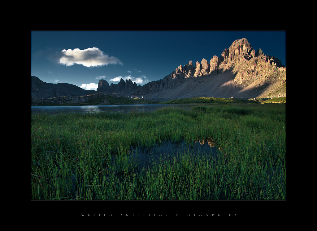 Molto bella la luce che accarezza la montagna,mi piace anche la cima specchiata,sarebbe stato possibile includerne di più?