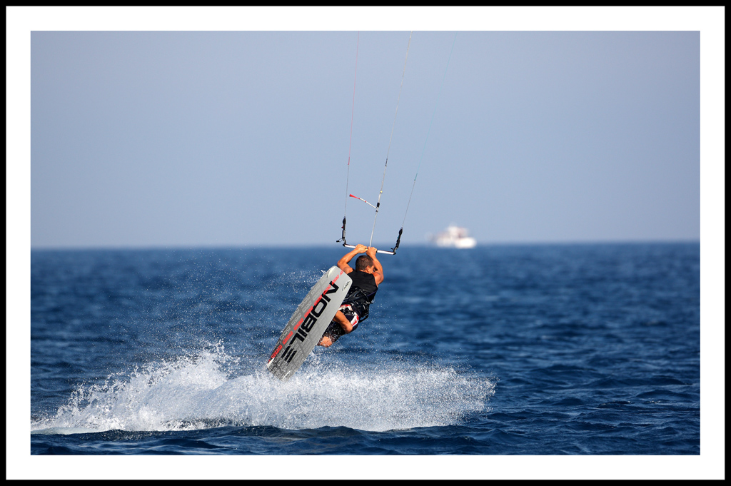 Prova a tagliare 1/3 a dx e 1/3 sopra. L'immagine sara' piu' dinamica e la barca sfuocata dara' meno fastidio. Certo che se avessi beccato anche l'espressione del viso... Ok!