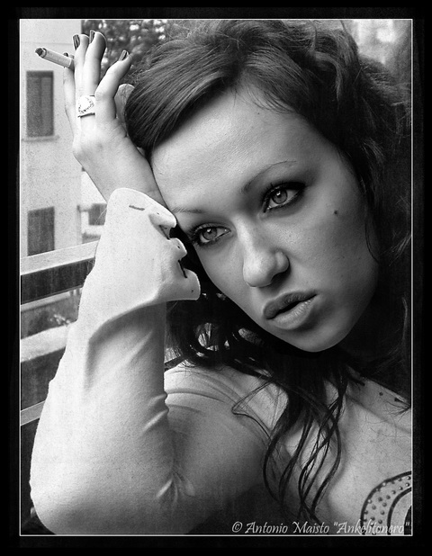 è un ritratto rubato alla mia amica marzia mentre se ne stava fuori al bar..