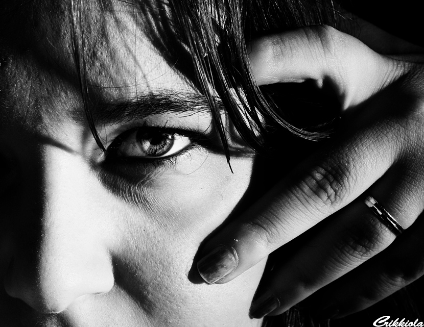 mi piace tanto, Crikkiola ! un b/n intenso come l'espressione, ed uno sguardo che sembra bucare lo schermo per passare dall'altra parte. Bella !