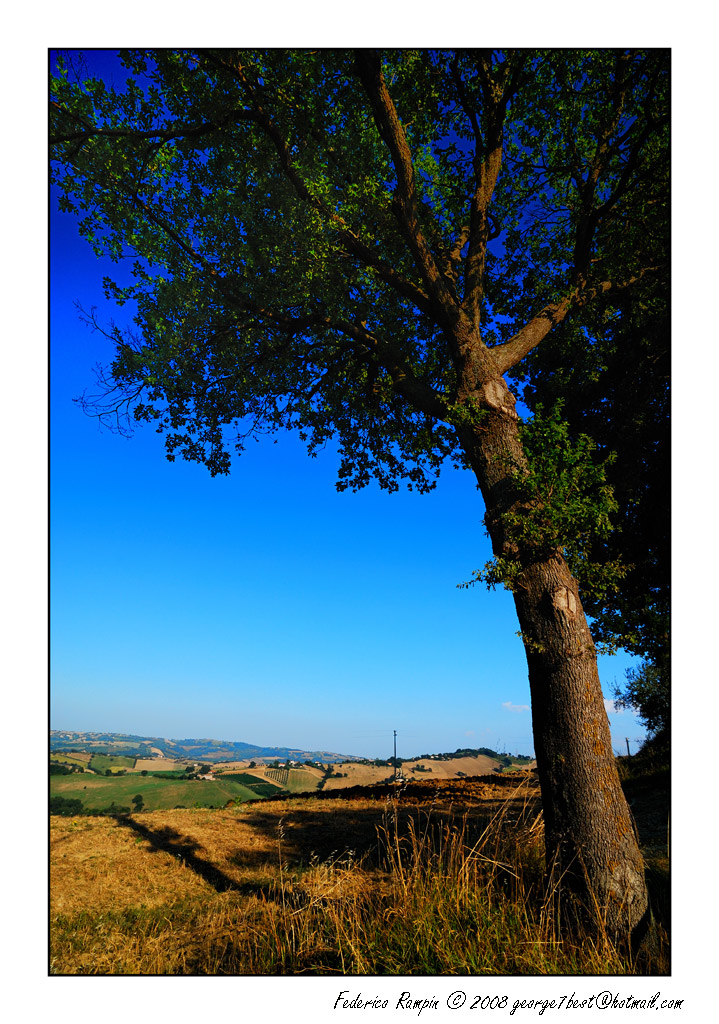 Mi piace l'albero che s'inchina al paesaggio, anche se, forse, un po' d'aria sopra gli avrebbe conferito maggiore maestosità.