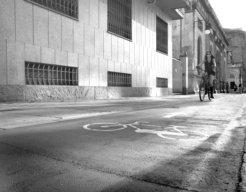 Peccato che la freccia si perda tra tutto il bianco dovuto ai riflessi del sole sull'asfalto... buona l'intuizione