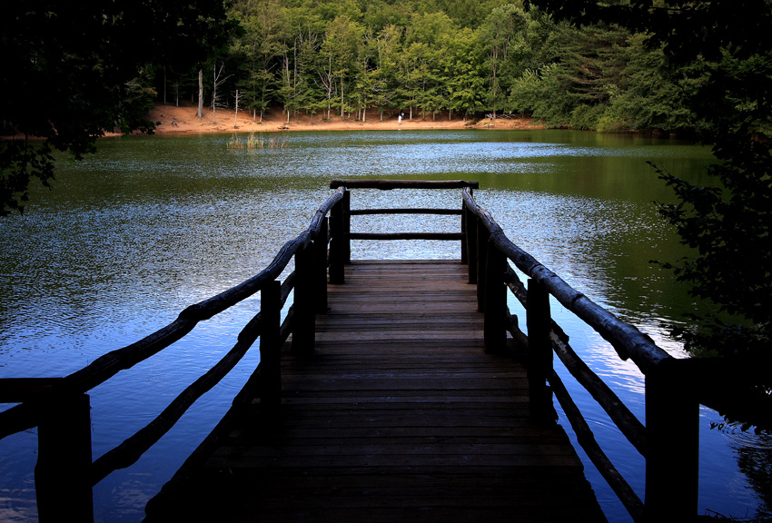 Il pontile proiettato nel laghetto dona profondità all'immagine. Bello il gioco delle ombre, dallo scuro del punto di ripresa al chiaro. Immagine suggestiva e gradevole. Bella la tavolozza di colori.